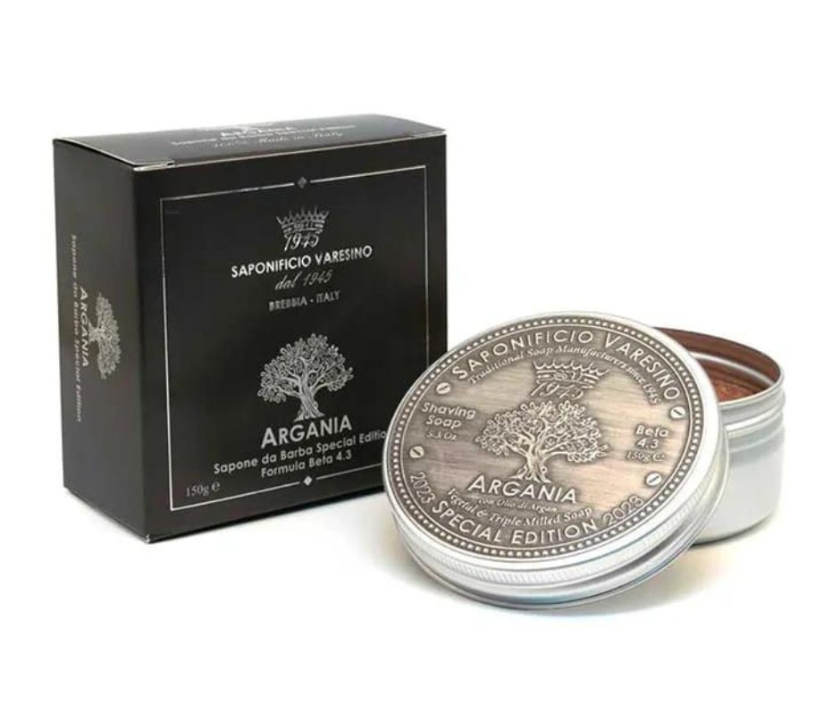 Saponificio Varesino Argania parranajosaippuassa on erityisesti ihoa kosteuttavia ainesosia ja se sopii hyvin kuivaihoisille. Kasvipohjaisten öljyjen yhdistelmä takaa liukkaan ja mukavan ajon.
